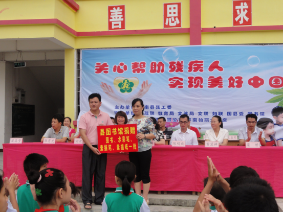 2014年5月16日,平南县图书馆给智障学校捐赠图书、水彩笔、素描笔、素描笔一批。