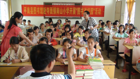2014年5月26日平南县图书馆赴寺面镇南山小学开展图书进校园活动。