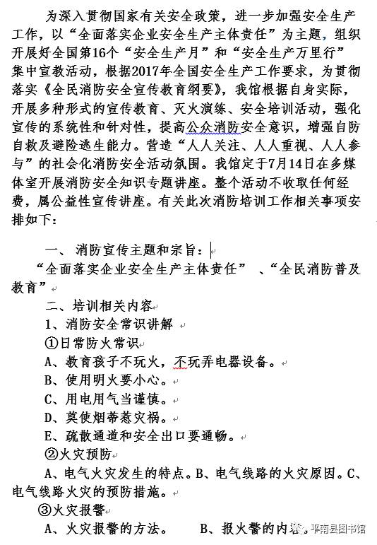 县图书馆开展2017年 “全民消防普及教育”宣传培训班通知