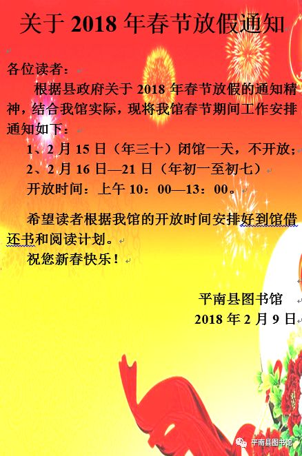 关于2018年春节放假通知